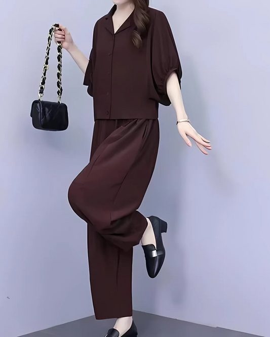 Conjunto de Dos Piezas con Pantalón Liso y Camisa de Manga Corta