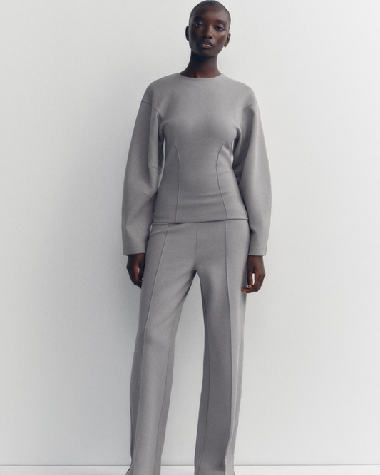 Conjunto formal de mujer con top de manga larga y pantalón ancho
