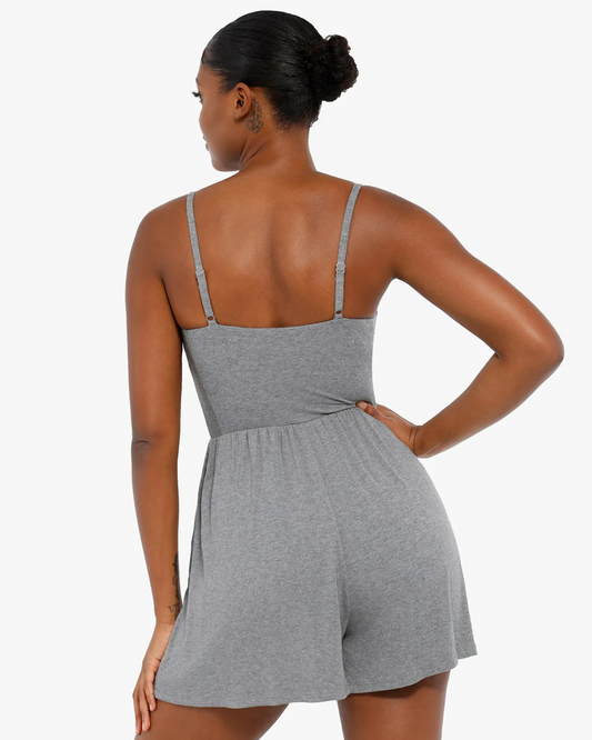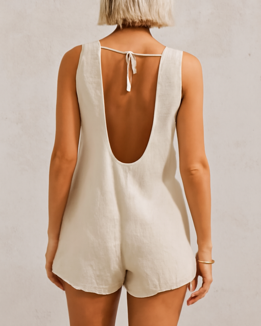 Mono Corto de Lino con Escote en la Espalda para Mujer