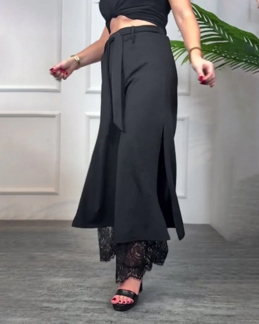 Pantalón ancho con forro de encaje para mujer