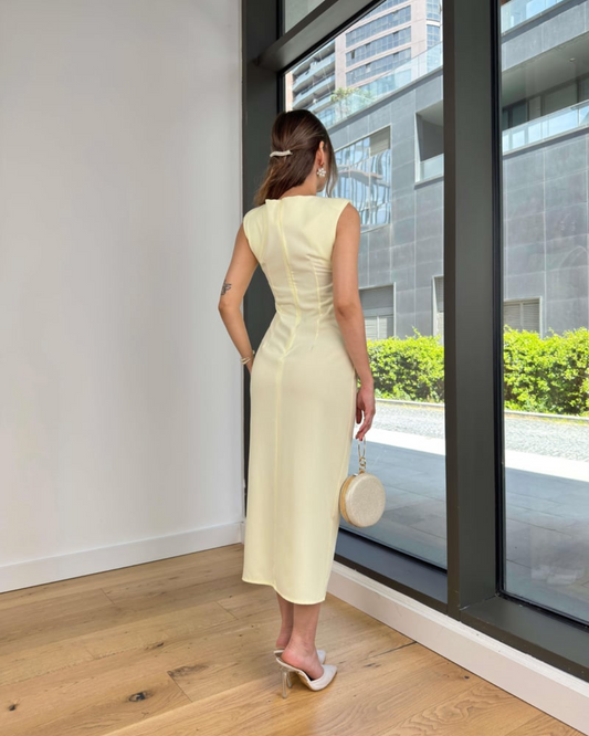 Vestido Ceñido Sin Mangas y con Abertura en la Pierna