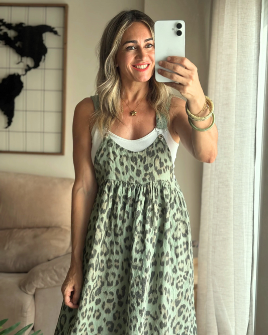 Vestido de Encaje con Estampado de Leopardo y Escote en V para Mujer