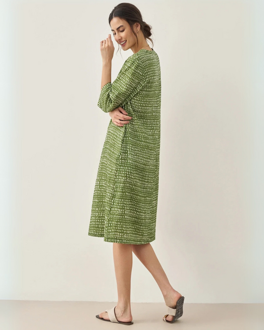 DESCUENTOVestido de Lino con Escote V de Lunares