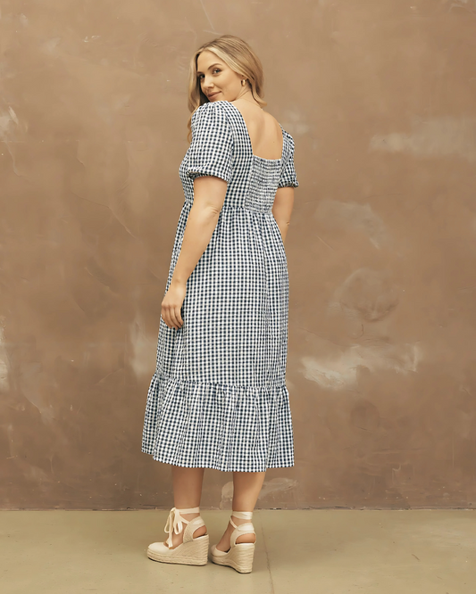 Vestido de Cuadros Gingham con Volados Estilo Fresco y Elegante