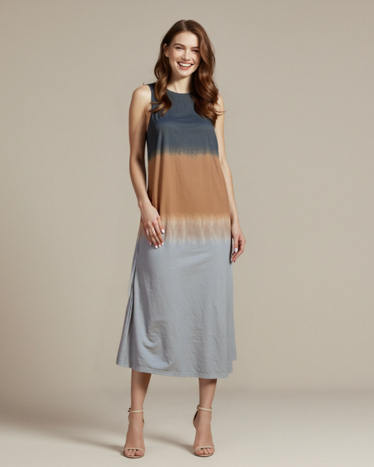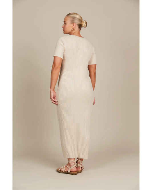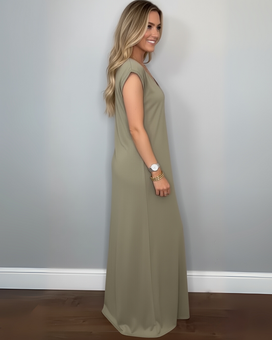 Vestido Largo de Manga Corta con Canalé para Mujer