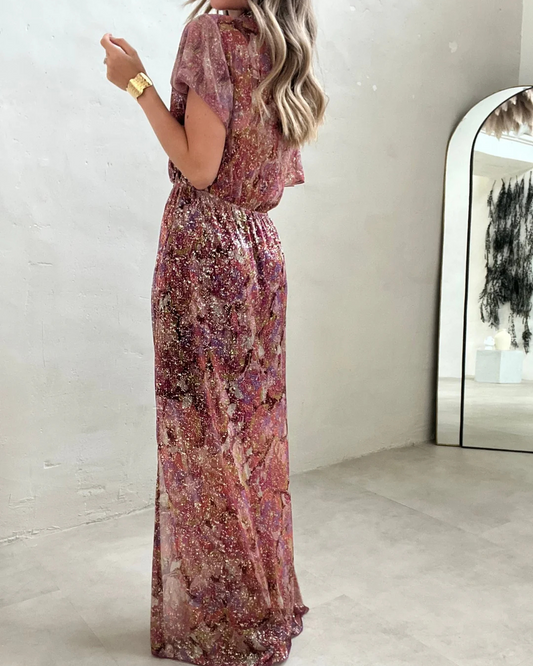 Vestido largo con estampado de acuarela cuello halter y espalda descubierta