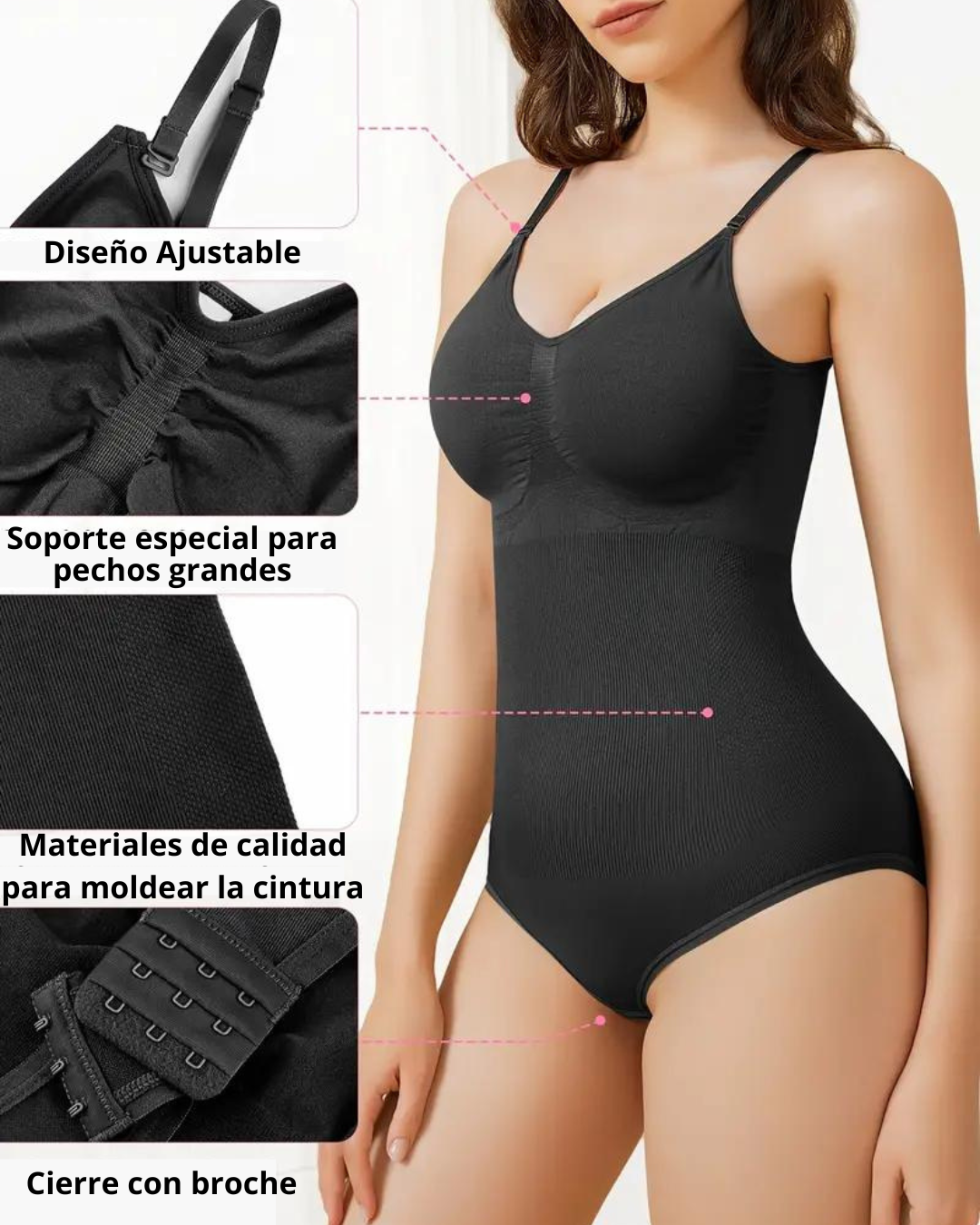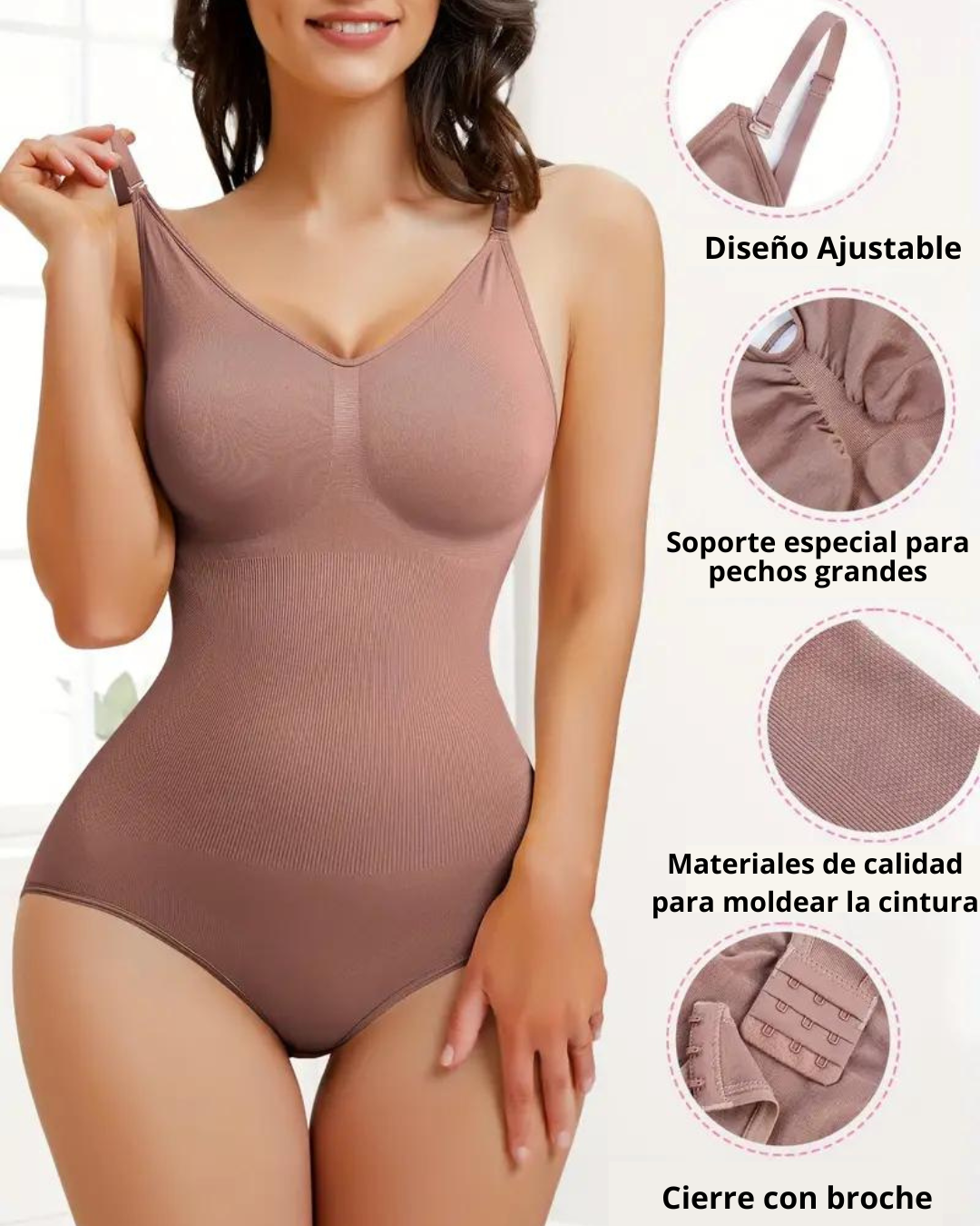 Nuestra Body-Faja Moldeadora cuenta con un panel abdominal estratégicamente diseñado para ofrecer un control preciso y firme. Define tu cintura y acentúa tu figura de manera natural, proporcionándote una silueta elegante y esbelta.