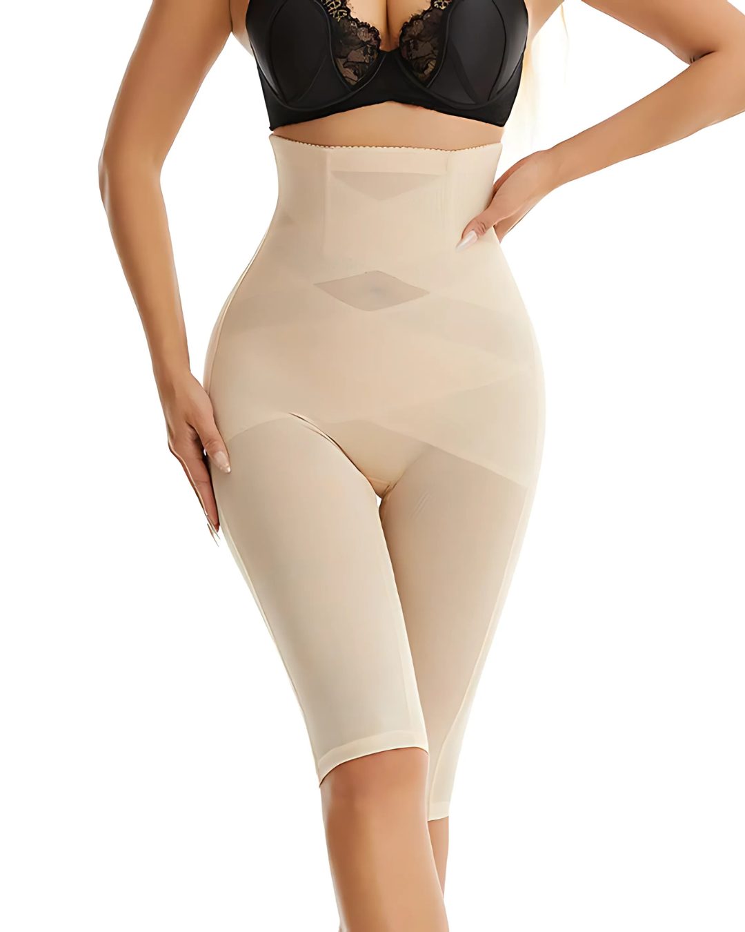 Su cintura alta y banda de sujeción mantienen la faja en su lugar sin enrollarse, mientras que su acabado sin costuras garantiza discreción bajo la ropa.