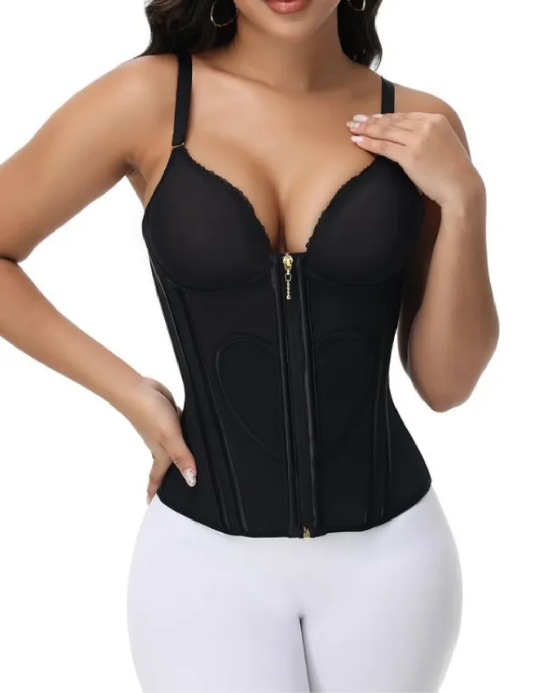Esta faja estilo corsé moldeadora de cintura cuenta con un diseño 3D que supera tus expectativas. El pecho de este corsé negro está cortado a la medida real, se adapta a la curva del pecho y los tirantes ajustables lo elevan.