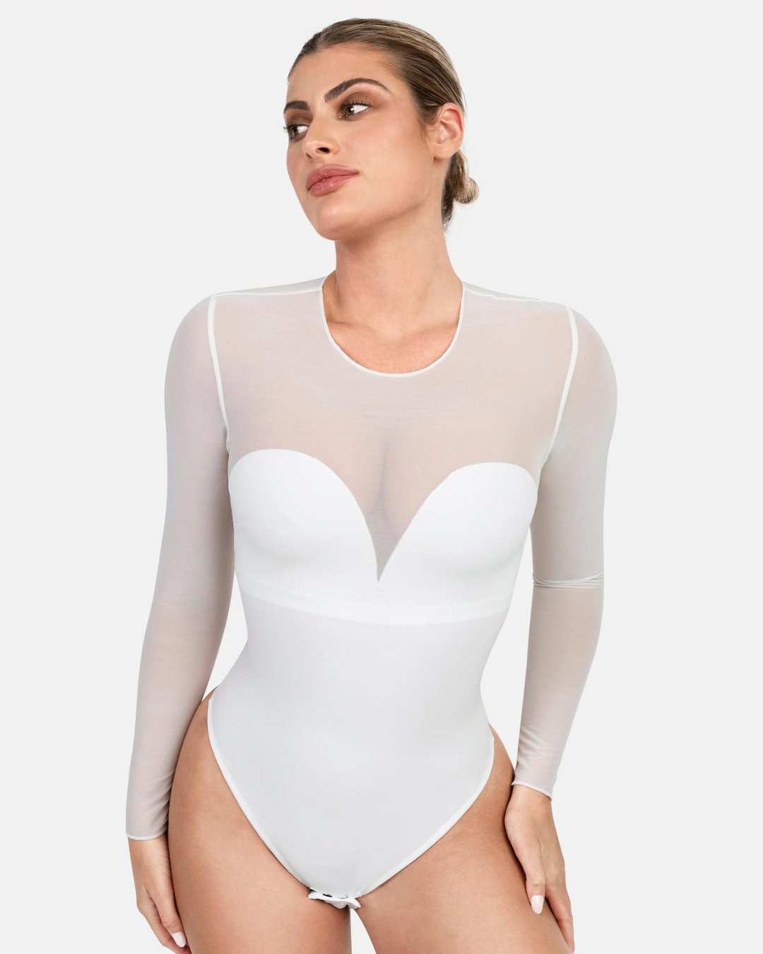 Faja corporal de malla ilusión con mangas largas para control de abdomen