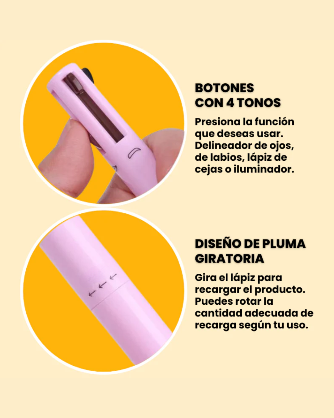 Lápiz de Maquillaje Multifuncional 4 En 1, Labial, Delineador, Cejas y Sombra (OFERTA 2X1)