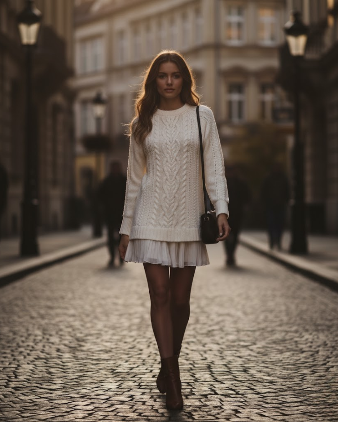 Confeccionado con un tejido de punto excepcionalmente suave, este vestido ofrece una sensación acogedora similar a la de un suéter. Proporciona calidez sin sacrificar el estilo, ideal para la temporada de frío.