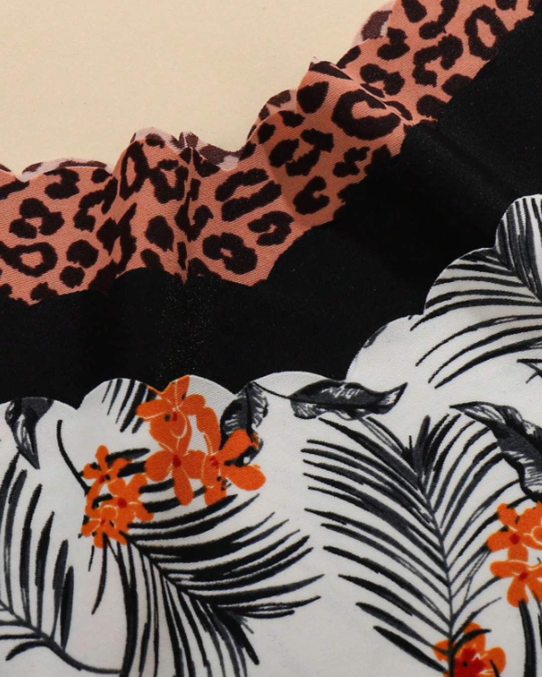 Esta tela fusiona dos mundos de diseño en una sola pieza vibrante y única. La parte superior exhibe un llamativo estampado , evocando un estilo salvaje y atrevido. Este patrón aporta una fuerte personalidad, ideal para prendas que buscan destacar con un toque indomable.