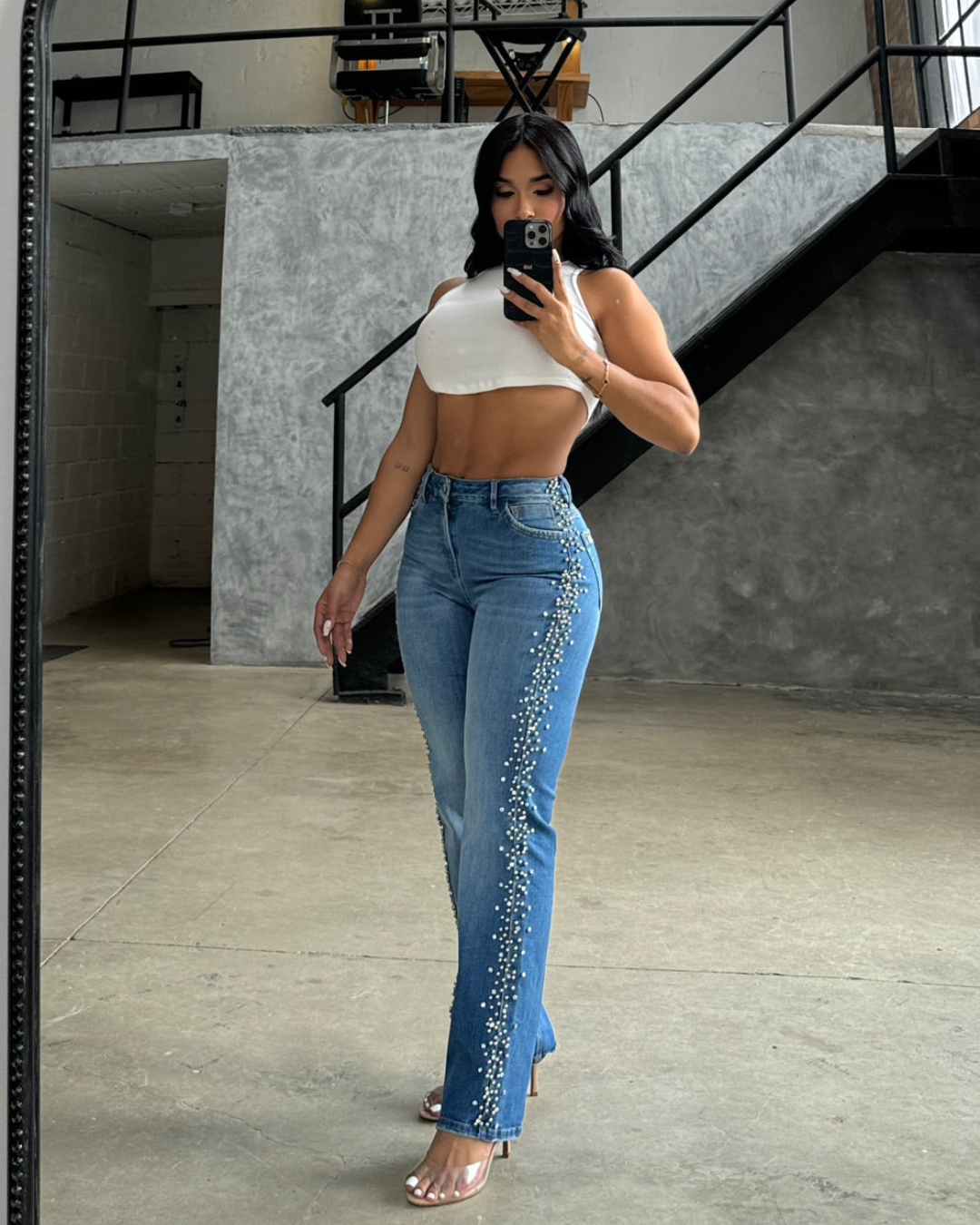 Ideales para combinar con tacones, botas o zapatillas, estos vaqueros se adaptan fácilmente a diferentes estilos, proporcionando un look elegante y moderno en cualquier ocasión.