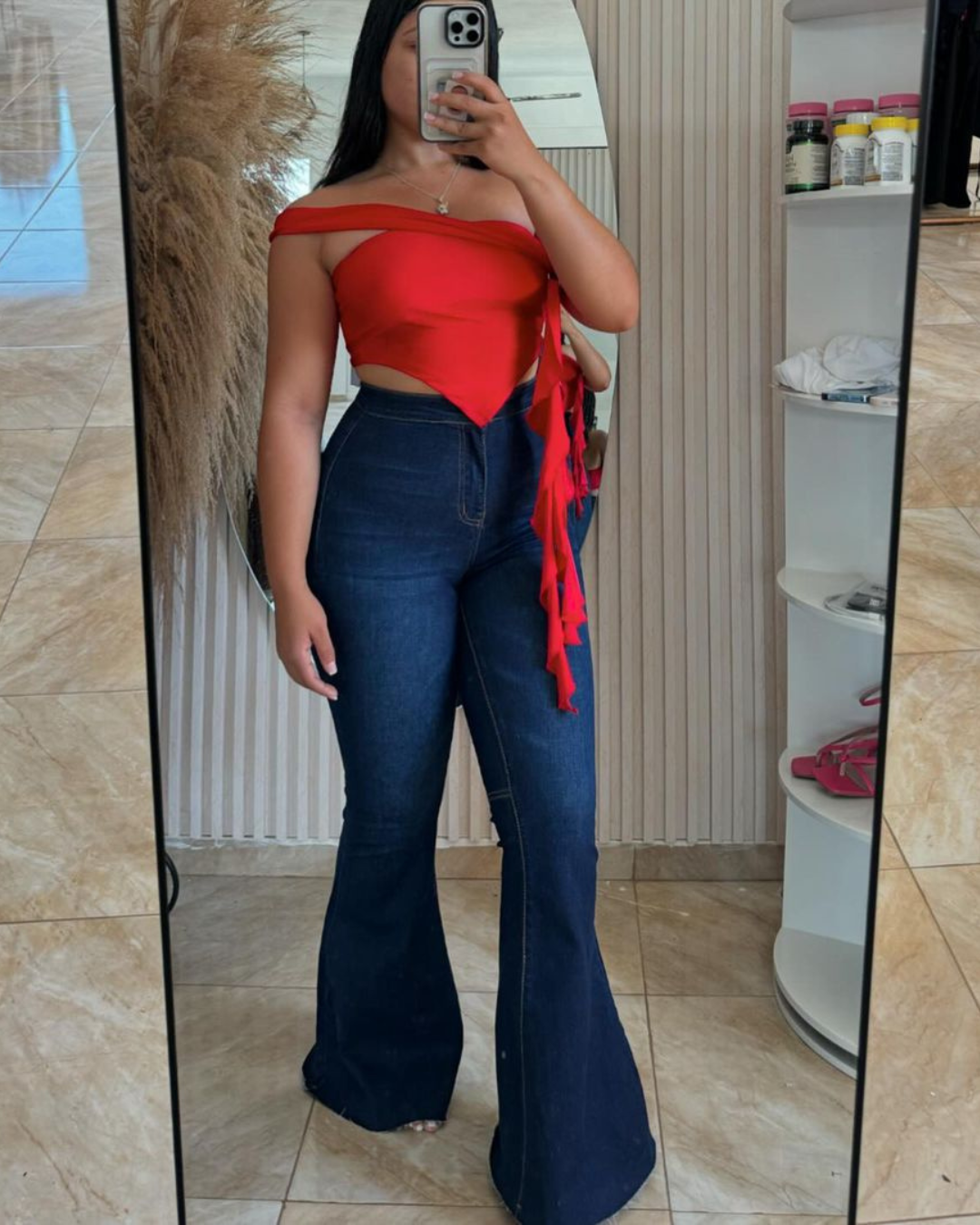 Este pantalón es lo suficientemente versátil como para combinarlo con blusas formales o camisetas casuales. Perfecto tanto para un día en la oficina como para una salida con amigos, su diseño de corte alto y campana se adapta a diferentes estilos y situaciones.