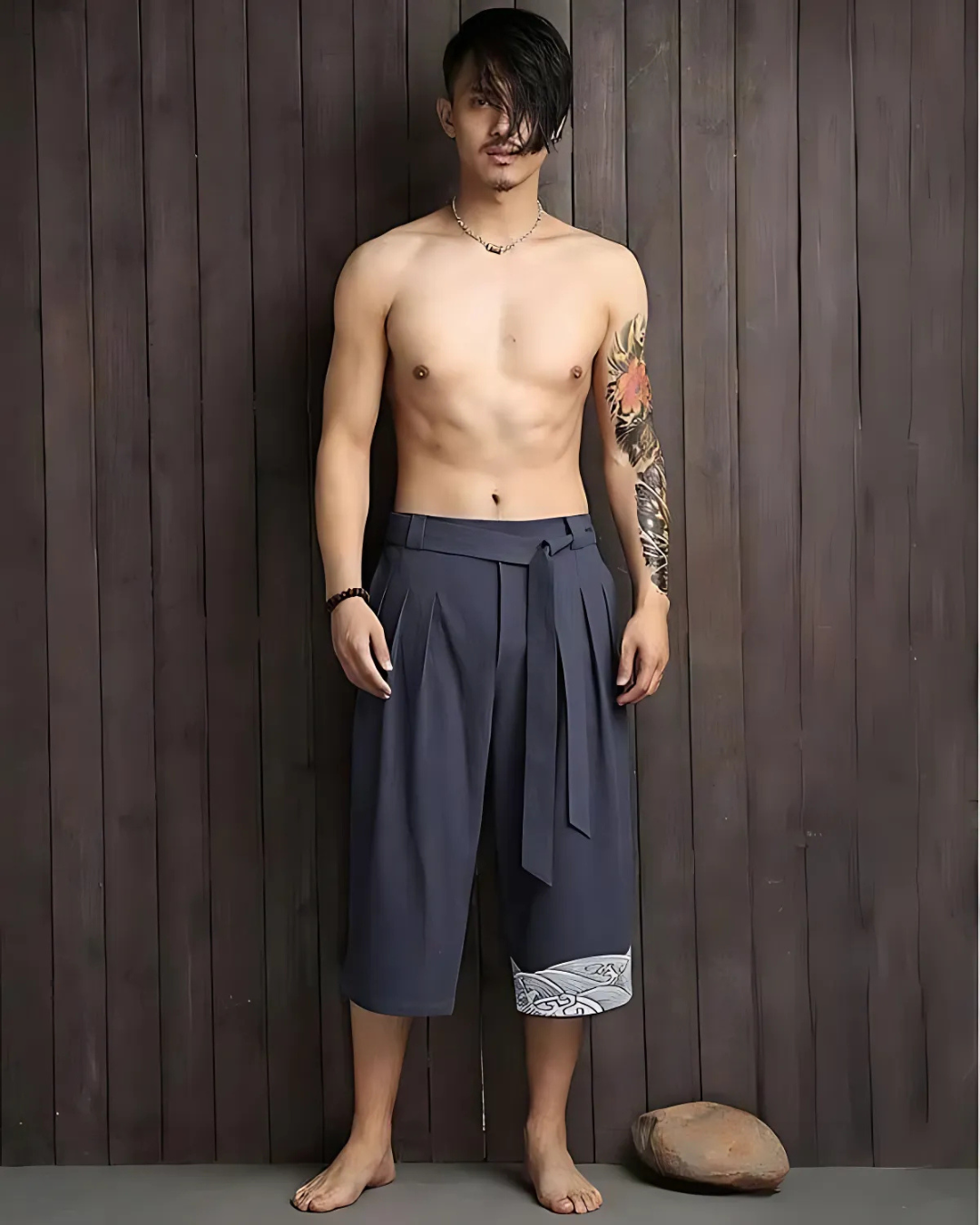 Añade un toque único a tu vestuario con esta bermuda de inspiración nipona. Su silueta moderna y su ajuste holgado la convierten en la prenda ideal para quienes buscan comodidad sin renunciar al estilo, perfecta para cualquier ocasión casual o semi-formal.