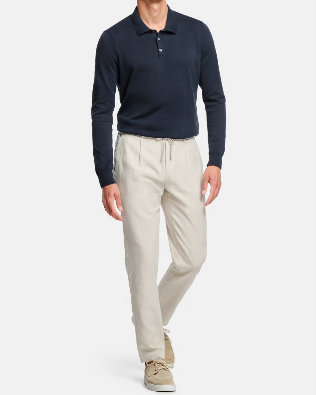 Estos pantalones de corte recto se adaptan al cuerpo gracias al tejido, garantizando la libertad de movimiento sin renunciar al estilo. Perfecto para el día a día o para las ocasiones más formales.