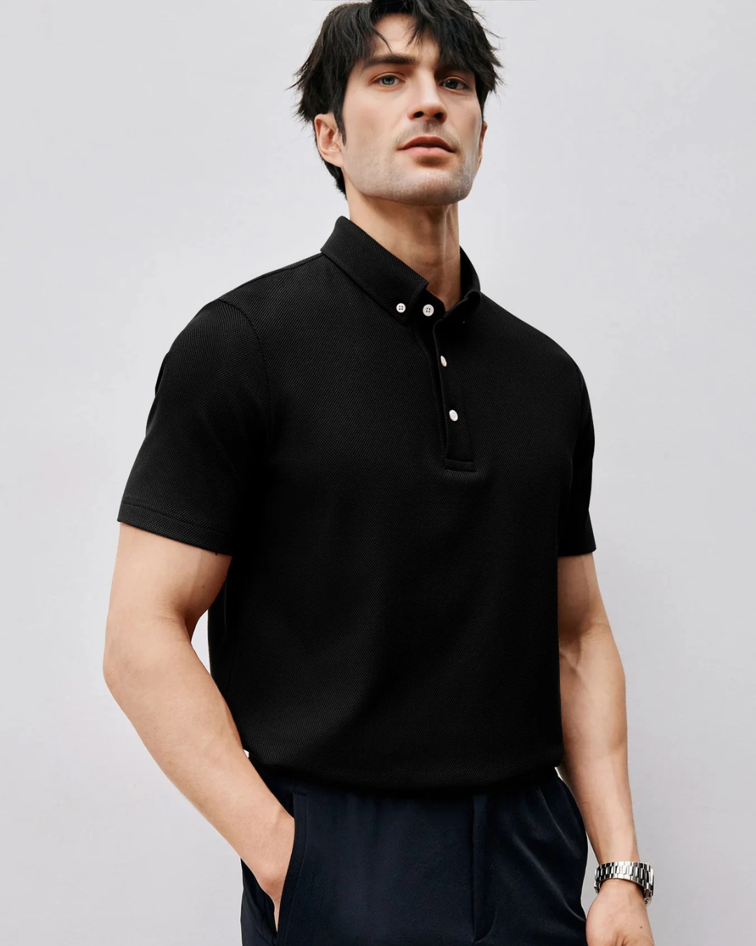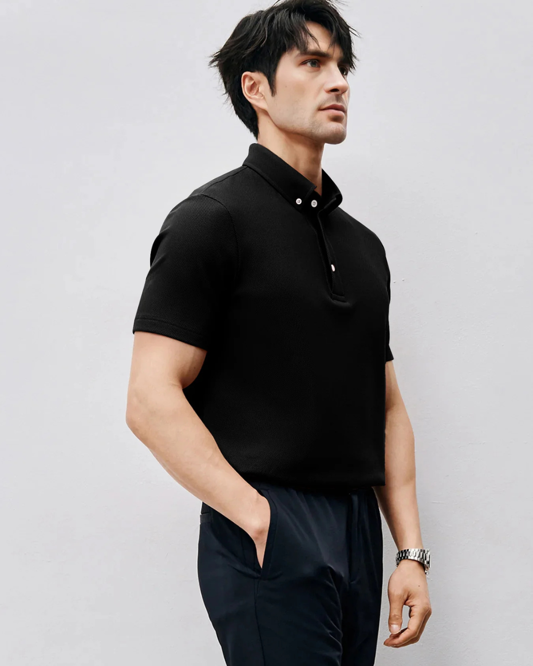 Polo de manga corta de tejido de poliéster transpirable para hombre