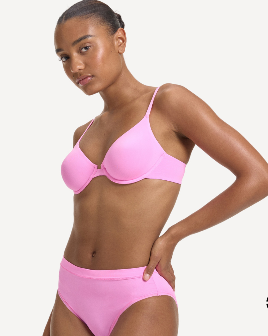 Este sujetador me quedo perfecto, me encanto, volvere a comprar más. El color es precioso y la tela elastica.