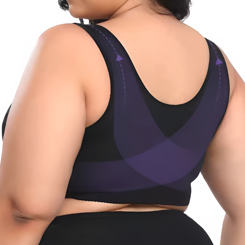 Este sujetador de contorno ancho es la elección perfecta para tu comodidad diaria. Cuenta con un práctico cierre delantero de corchetes que facilita su uso. Sus copas, diseñadas en tres secciones, ofrecen un busto natural y bien formado, recogiendo y estilizando tu figura sin necesidad de relleno ni aros, brindando una comodidad inigualable. La espalda, de corte alto y ancho, proporciona un soporte adicional. Los tirantes son anchos y acolchados, diseñados para aliviar la tensión en los hombros y la espalda, ideal para mujeres con busto grande. Además, estos tirantes están pensados para mantenerse en su lugar durante todo el día. Recomendado para el postoperatorio por su cierre frontal y su tejido suave, este sujetador también es perfecto para mujeres con piel extremadamente sensible.
