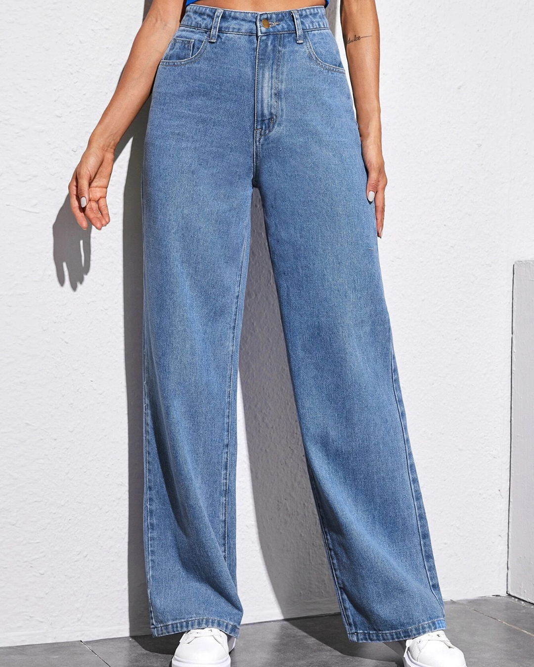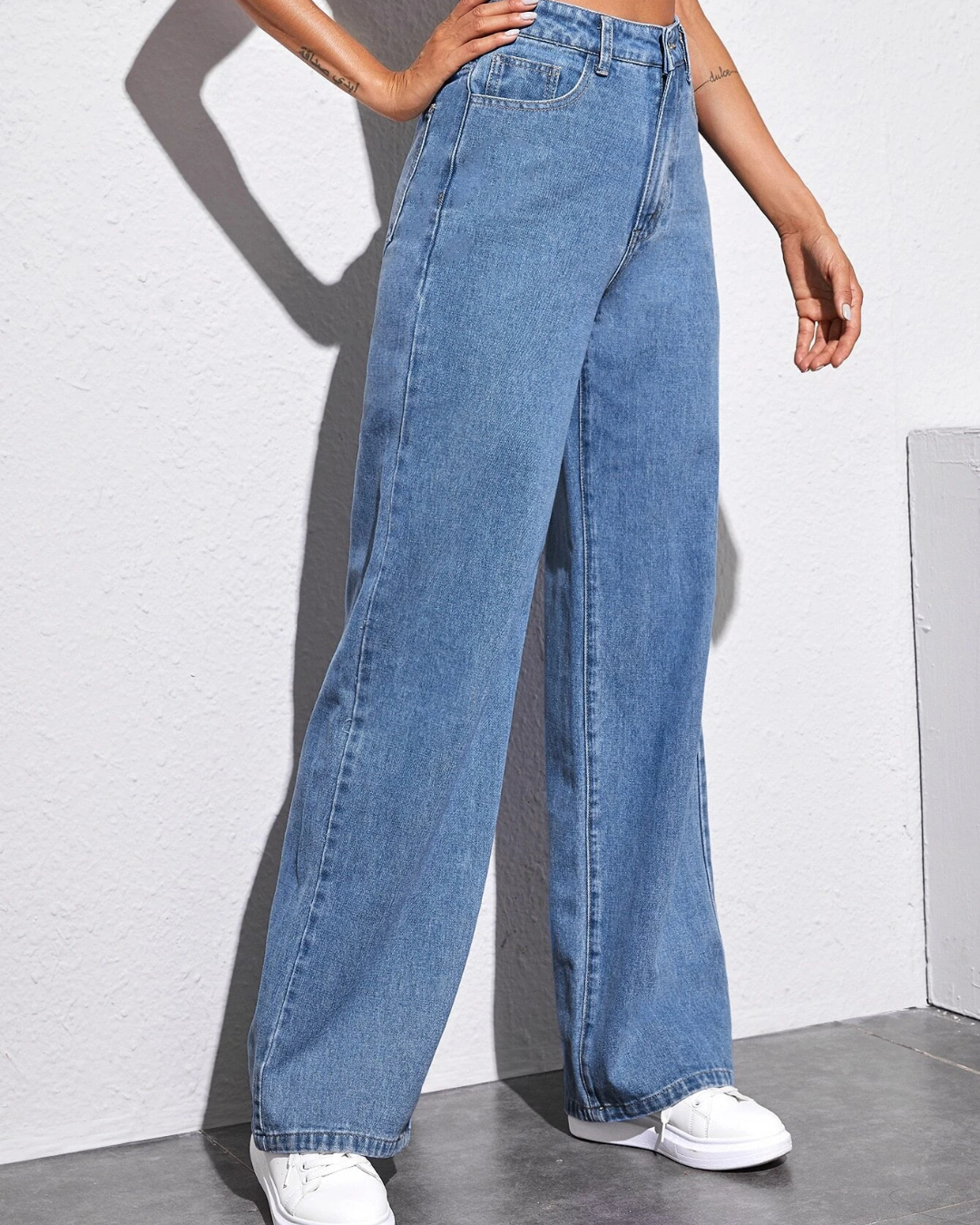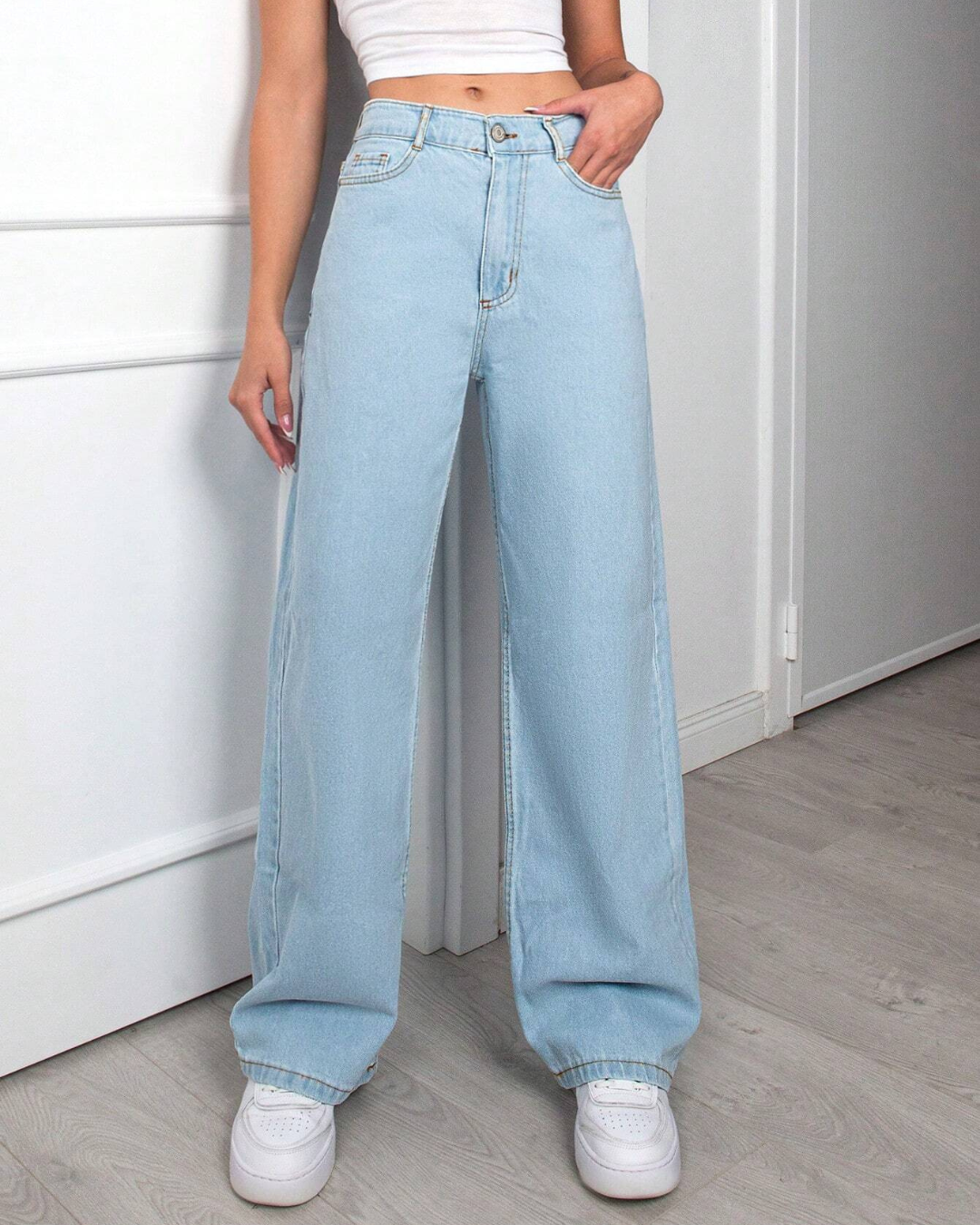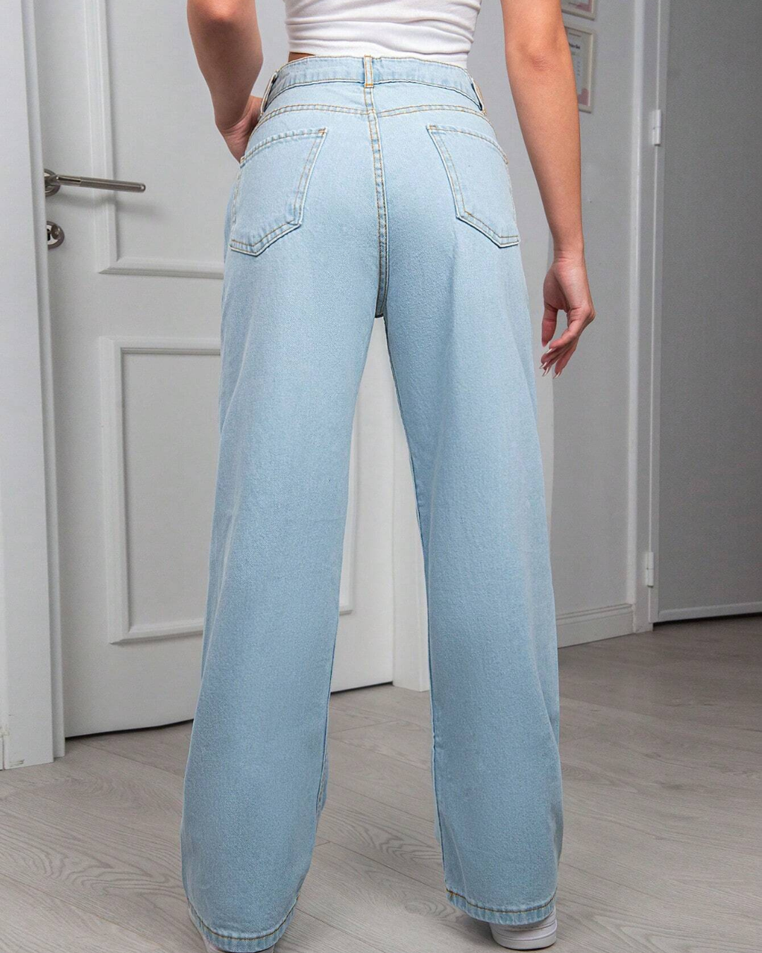 Vaqueros Ligeros de Pierna Ancha con Cintura Alta y Estilo Relajado