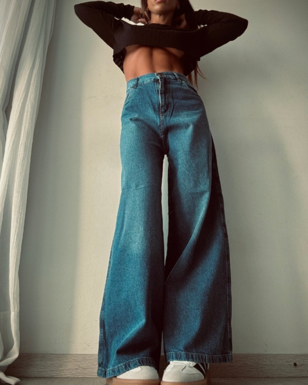 Estos vaqueros combinan un corte moderno con un ajuste cómodo y elegante. La pernera ancha proporciona un ajuste fluido y sofisticado, ideal para crear looks versátiles y estilosos.
